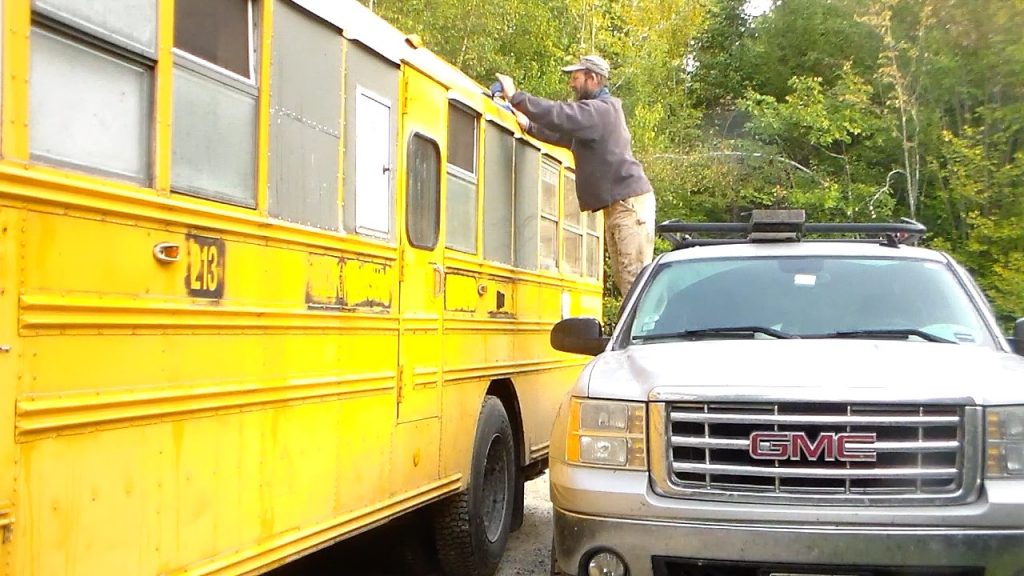 I was talking to a bus mechanic about this project and he told me to, as much as possible, stup on the ribs (you can tell where they are by the rivets in the roof). He said that if you step in the middle where the the ribs dont’ support the sheet metal, it tends to make the metal flex and open up the seams.